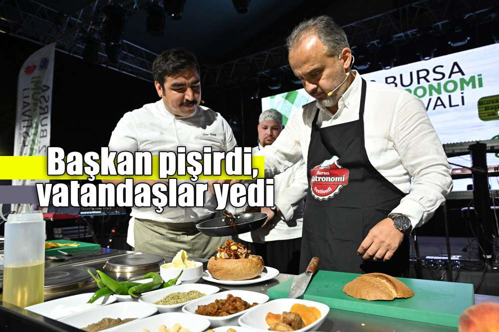 Bursa Büyükşehir Belediyesi’nin 'Yeşil Bursa, Yeşil Gastronomi’ temasıyla bu yıl ikincisini düzenlendiği 2. Bursa Gastronomi Festivali’nde başta Bursa olmak üzere, Türk, Balkan ve Kafkas mutfağının eşsiz lezzetleriyle buluşan Bursalılar, gece de Mustafa Ceceli konseri ile coştu. Etkinlik kapsamında ünlü şef Türev Uludağ ile mutfağa giren Büyükşehir Belediye Başkanı Alinur Aktaş, hazırladığı yemeği, alandaki vatandaşlara kendi elleriyle ikram etti.