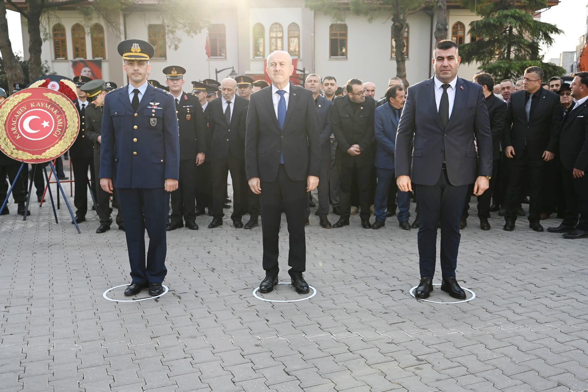 Çelenk sunumunun ardından saat 09.05’te, ülke genelinde olduğu gibi Karacabey’de de sirenler eşliğinde iki dakikalık saygı duruşunda bulunuldu. Ardından İstiklal Marşı okunarak ve şanlı bayraklar yarıya indirildi.