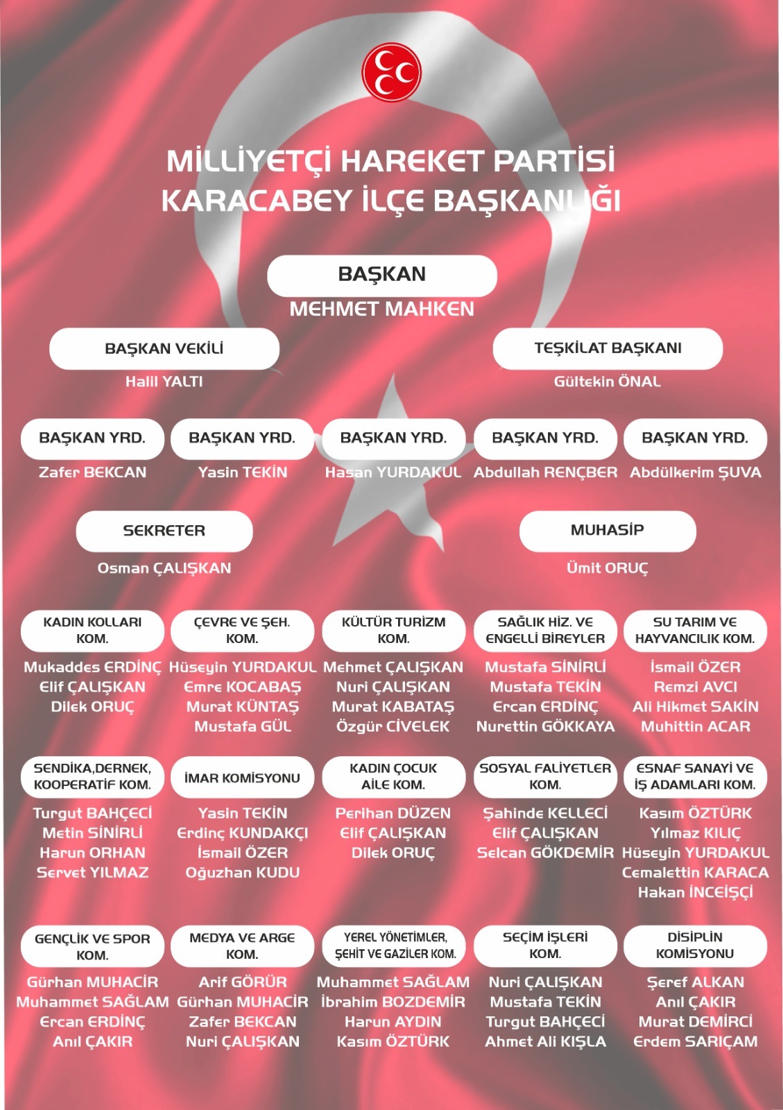 MHP Karacabey İlçe Teşkilatı yönetiminde görev alan isimler şu şekilde oluştu:
