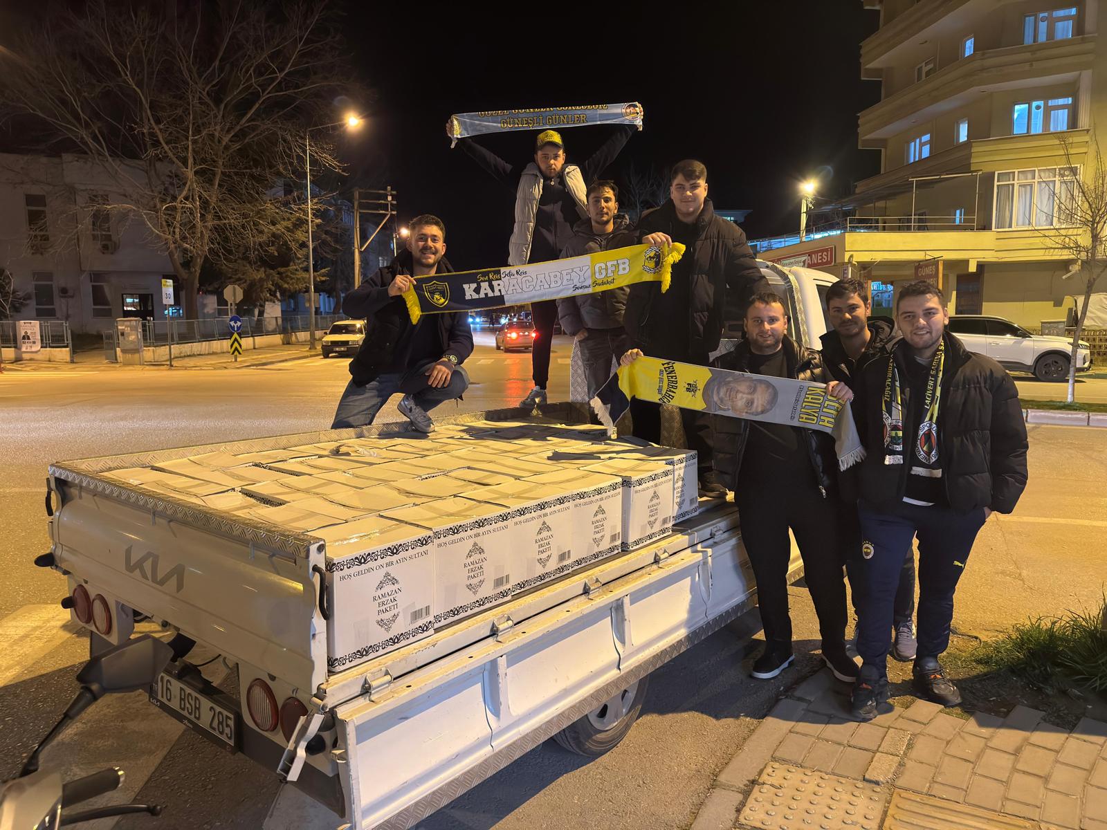 Kurulduğu günden bu yana sosyal farkındalık faaliyetleriyle ilçede örnek bir taraftar profili çizen Karacabey Genç Fenerbahçeliler Taraftar Grubu, yardım geleneğini bu Ramazan'da da bozmadı. Grup üyeleri, özellikle Ramazan ayı boyunca yoğunlaştırdıkları yardım çalışmaları kapsamında, temel gıda ihtiyaçlarını karşılayacak erzak paketlerinin yanı sıra, ailelerin ihtiyaçlarına göre esneklik sağlayan market çekleri ve bayram öncesi çocukların sevincine ortak olacak hediye çeklerini ihtiyaç sahiplerine ulaştırdı.