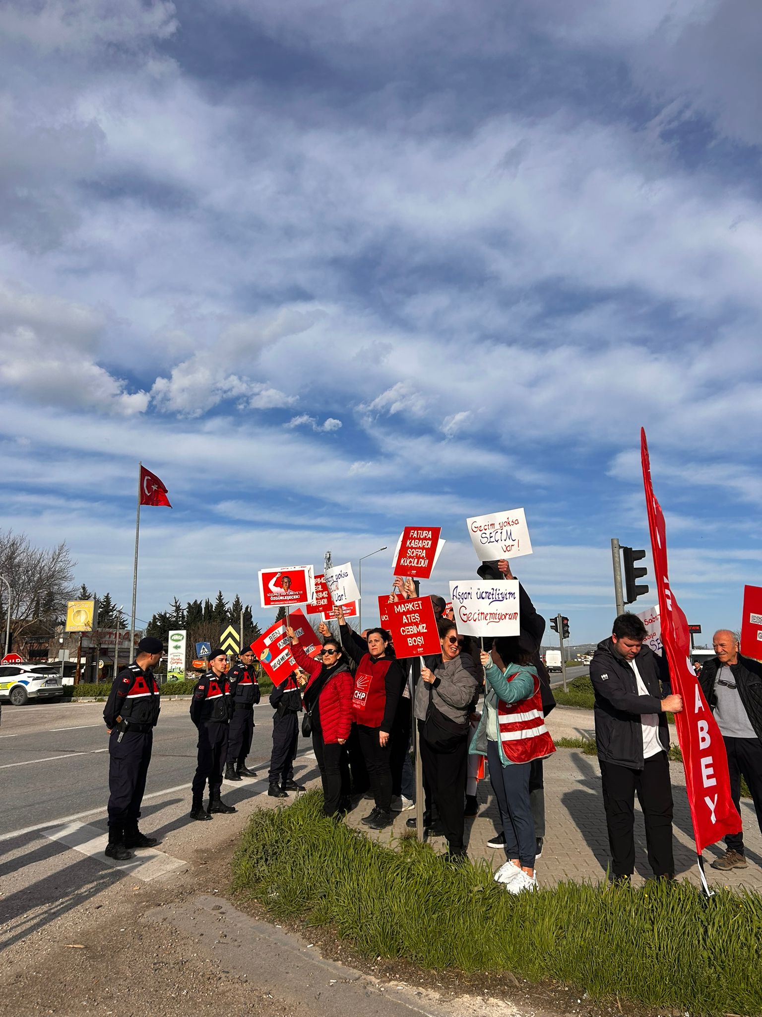 CHP İlçe Başkanı Mustafa Utku öncülüğünde İzmir–Bursa Yolu Uluabat Işıkları mevkiinde bir araya gelen kalabalık grup, ekonomik krizin gündelik hayata yansımalarını protesto etti. Grup adına açıklama yapan Başkan Utku, eylemin barışçıl bir şekilde ve kamu düzenine saygılı bir ortamda geçtiğini belirterek, tüm vatandaşların trafik akışına azami özen gösterdiğini ifade etti.