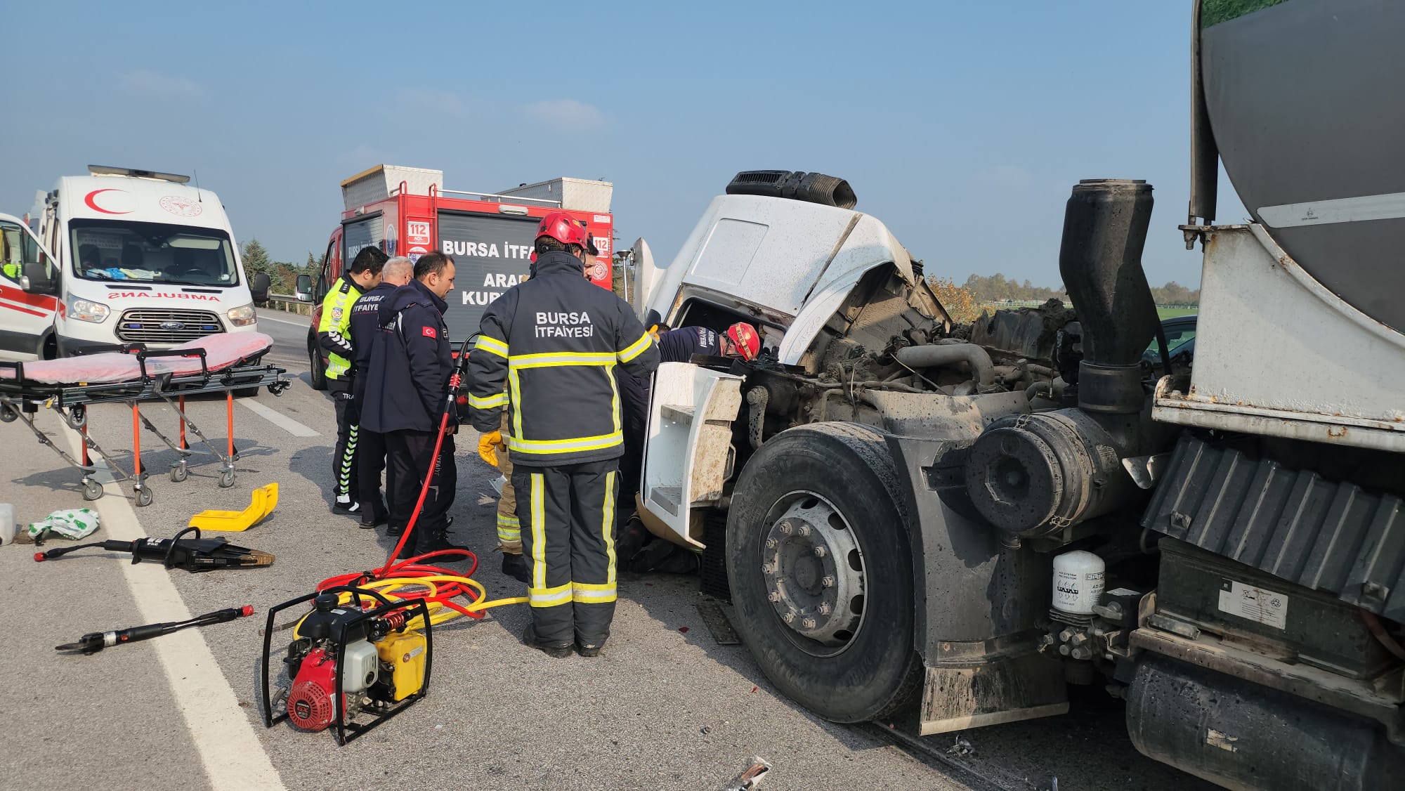 16 TE 580 plakalı süt tankeri, aynı yöndeki 16 BML 374 plakalı tıra arkadan çarptı. Kazada süt tankeri sürücüsü M.B., aracın kabininde sıkıştı. Olay yerine gelen itfaiye ekipleri yaklaşık bir buçuk saat süren yoğun çalışma sonucu sürücüyü sıkıştığı yerden yaralı olarak çıkardı.