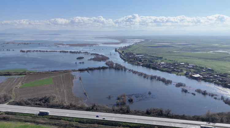 Karacabey’de karın erimesi sonucu dere taştı.