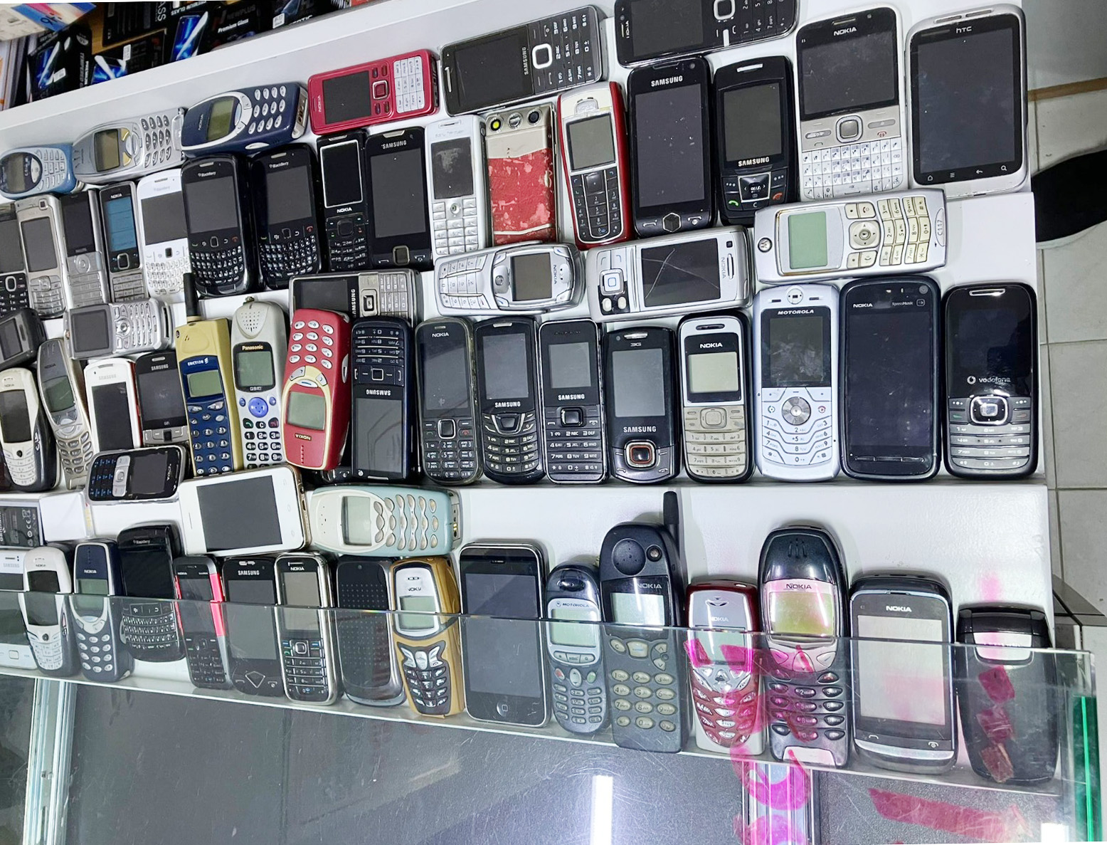 Yaklaşık 12 yılda biriktirdiği farklı marka ve modellerdeki cep telefonlarını camekan içerinde muhafaza eden Kürne, satın almak isteyenlerin tekliflerini ise geri çeviriyor.